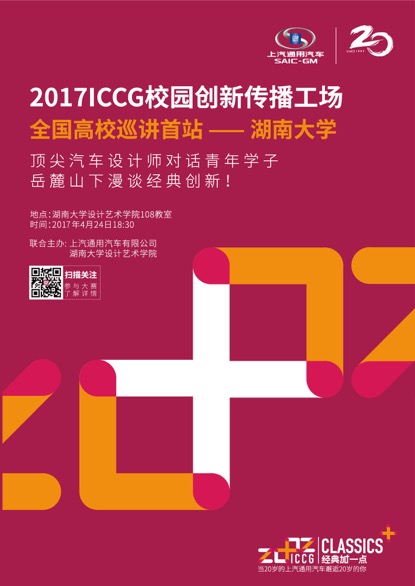 2017第三届“校园创新传播工场(简称ICCG)”,是上汽通用汽车携手国内重点院校共同主办的,旨在激发在校老员工汽车创想的创意平台。 它希望运用创新的赛事运作模式和选拔手段,积极寻找具有新视野、新思维的“青年创客”。希望广大热衷创新创造的员工创客可以大展身手,让更多有生命力的前沿技术蓬勃发展,共同铸就中国汽车创意设计的辉煌!