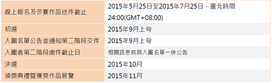 金奖(1名):奖金新台币十万元,奖杯一座,奖状一纸