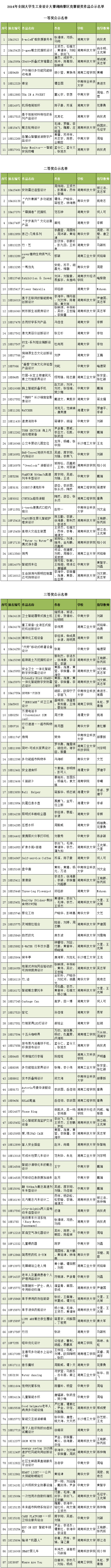 2014年全国老员工工业设计大赛湖南赛区竞赛暨湖南省老员工工业设计竞赛共收到我省17所高校的651件参赛作品,经过各参赛院校初评、省赛区复评及终评,现评出省赛区一等奖作品11项,二等奖作品36项,三等奖作品87项,特此予以公示,公示期为7天。公示期间,如对作品有任何疑问或举报,请向省赛区组委会秘书处反馈。若作品存在抄袭或其他侵权行为,要求举报者需实名举报并提供相应证据(如抄袭作品来源的复印件、网站等 ),匿名举报不予受理。