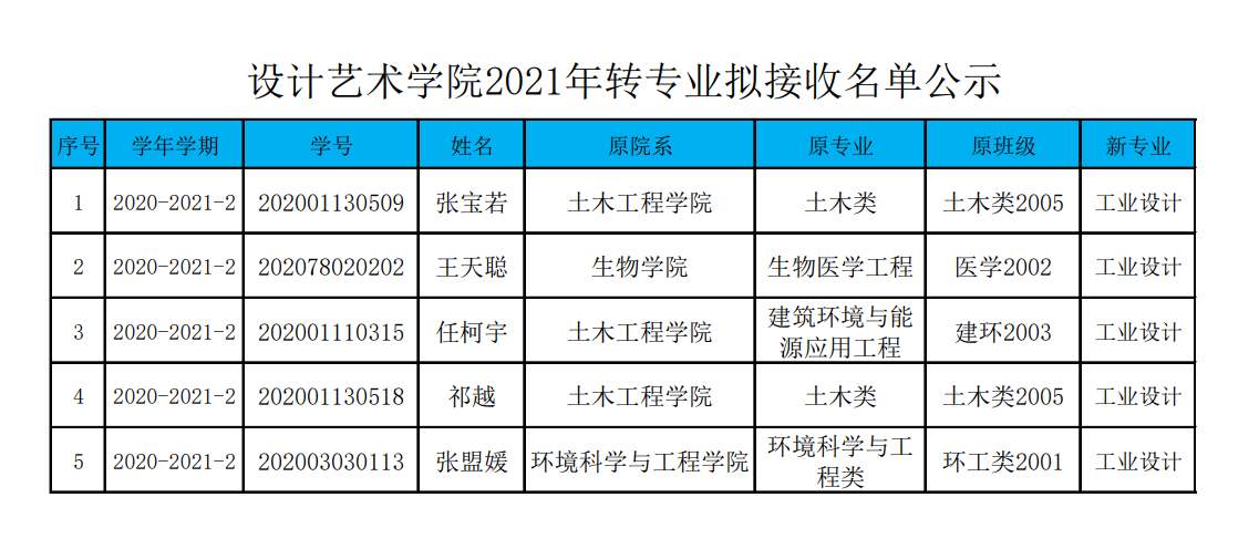 现将球王会2021年本科生转专业拟接收名单公示如下(按总分排名先后顺序),公示期从即日起至3月21日。如有异议或者有申请放弃转专业者,请于3月21日17点前向公司行政办公室反映,电话0731-8882418。