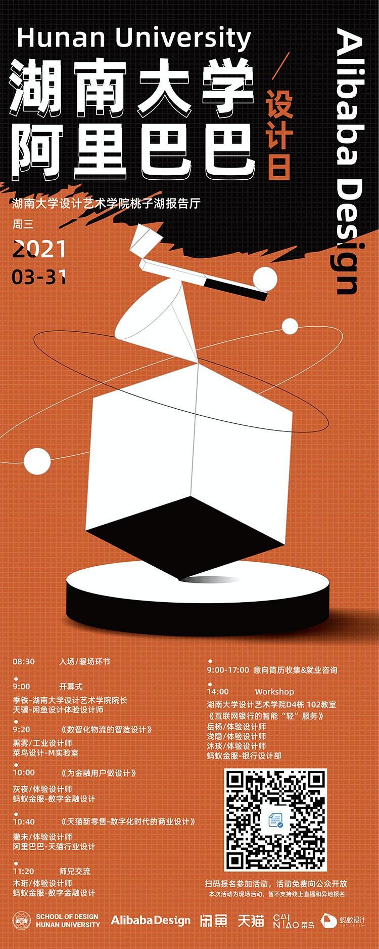 一年一度的球王会官网×阿里巴巴设计日将在3月31日开启,上午我们邀请到闲鱼、天猫、菜鸟、蚂蚁设计师进行设计分享,下午网商银行设计师将会就《互联网银行的智能“轻”设计》主题和同学们一起开展设计工作坊。同时在活动现场征集设计简历,阿里巴巴校园招聘设计面试官将会开放职位投递入口与就业答疑咨询