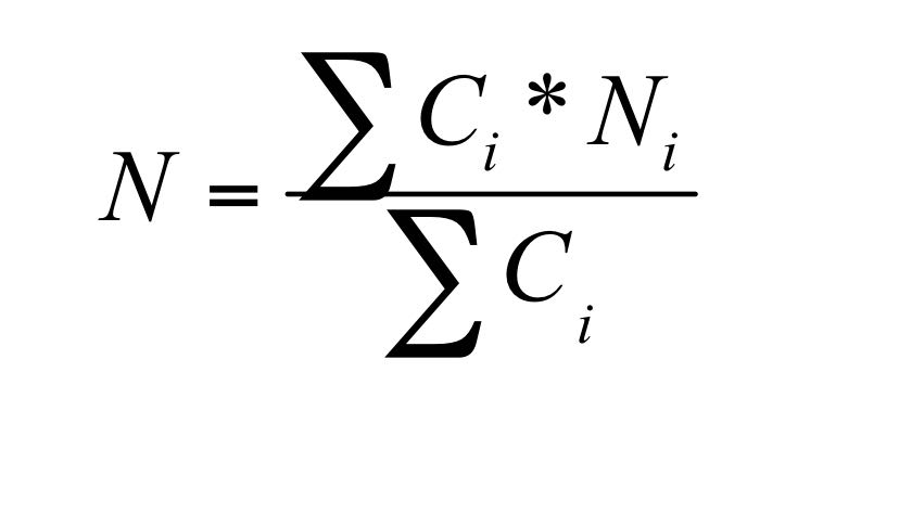 将研究生各门课程的规格化成绩Ni按学分Ci加权平均后,即得到该研究生的规格化平均分N。