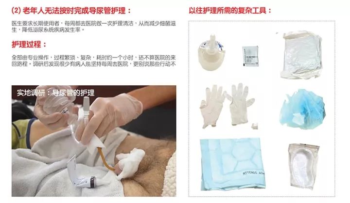 回国后,王子豪再次深入医院,观察使用导尿管的人群,他说:“导尿管的使用人群主要集中在60岁以上的男性前列腺疾病患者。导尿管插入膀胱后,如果不定期护理清洗,很容易滋生细菌,但老人们根本没有这个意识,一插就是3-6个月。加上尿管切口容易‘吸肉’,导致排尿困难,很多老人不知道怎么回事,还用力去挤,一挤就把膀胱内壁弄破了,于是病情越发严重,简直是灾难。”