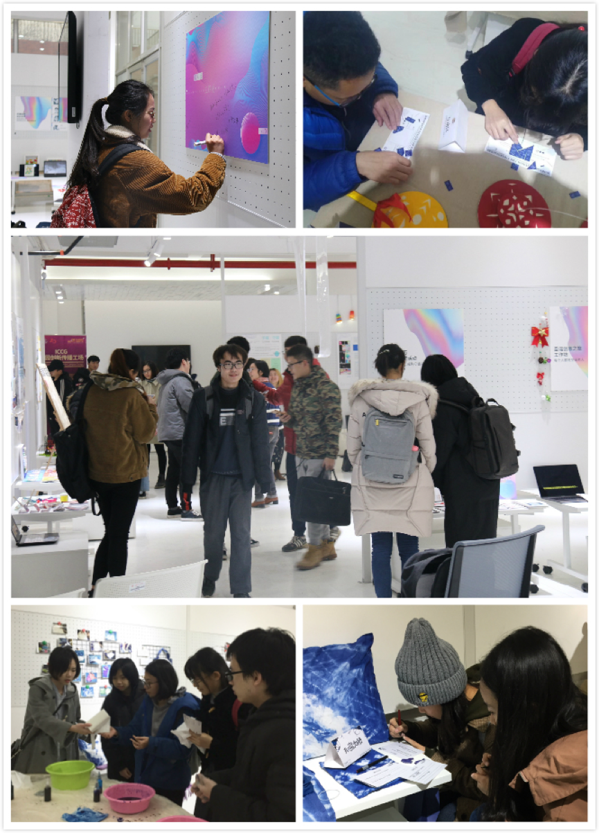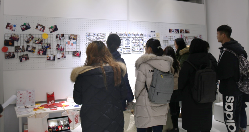 在此次课程汇报展中,三个班分别规划设计了各自的展区,统一了展览风格,并用文字、照片、实物、影像全方位地展示了设计主题、制作流程、实施情况、感想心得。别出心裁的交流互动方式,体验区等更吸引了不少观展者或驻足参观或体验交流,现场气氛活跃。本次展览将持续到1月22日下午17时,欢迎大家前来参观交流。