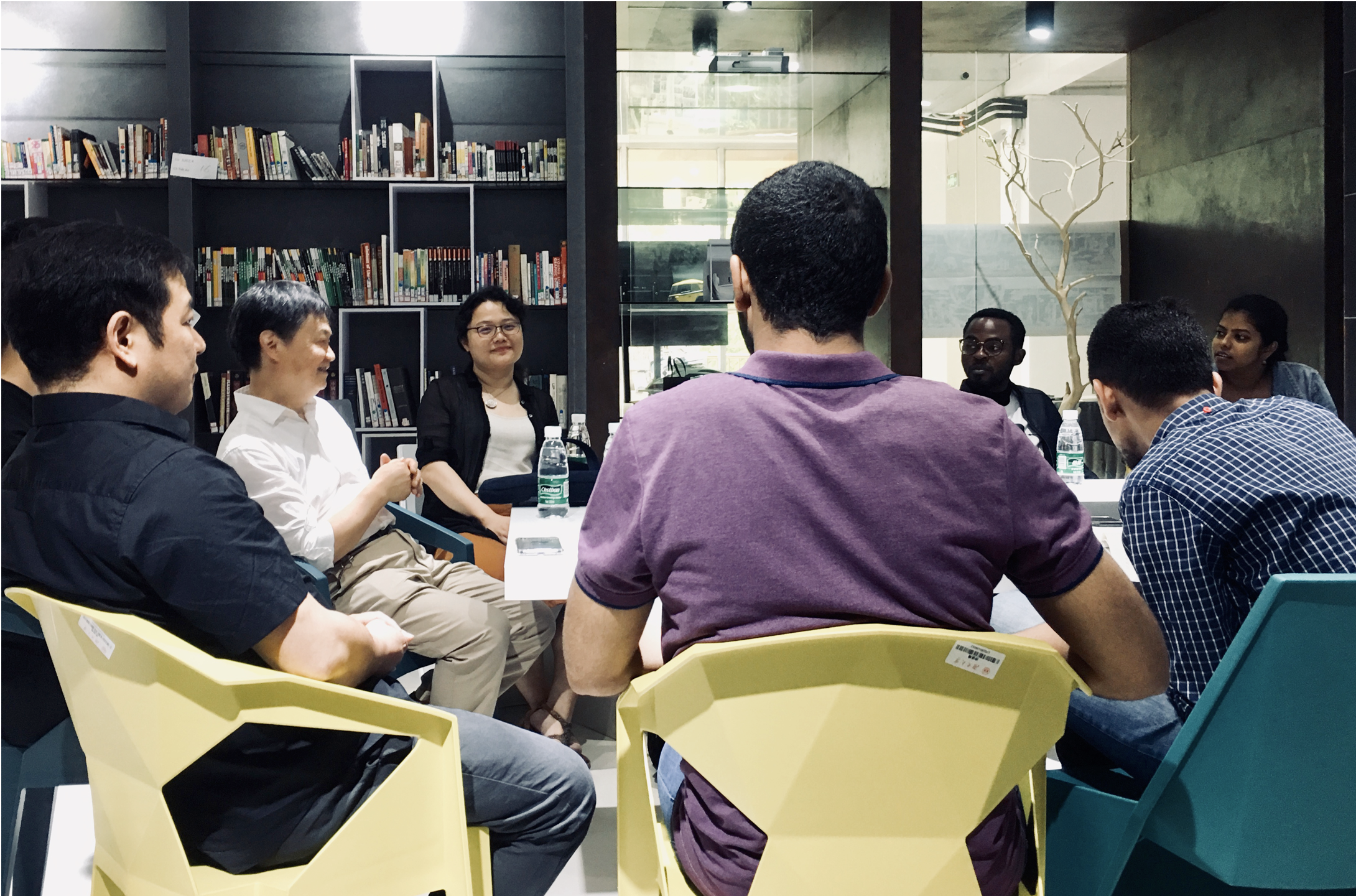 八位青年艺术家进行了个人自我介绍,并进行了项目分享。随后,青年艺术家与老师及员工志愿者们展开了积极的交流讨论,为接下来的艺术创作进行了广泛的构思与畅想。