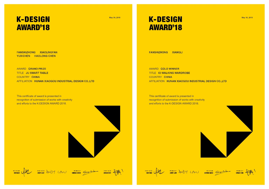 2018年5月30日,韩国K-DESIGN国际设计奖评奖结果公布,球王会研究生创业团队的设计项目获得两项大奖,其中JU smart table获得至尊金奖(最高奖),IO walking wardrobe获得金奖。