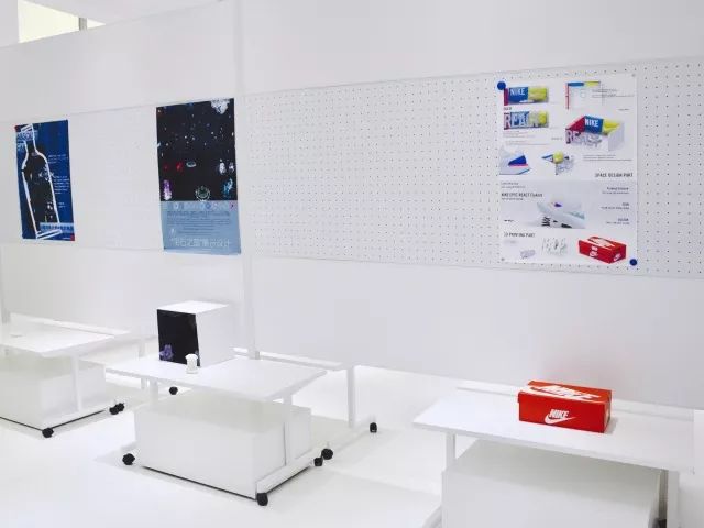 在展览现场,您将看到大屏幕滚动播放每件作品的演示视频。在各个展位,则会展示出每个设计的说明海报、结合 3D 打印技术的展示空间微缩模型等。此外,还放置着囊括了同学们从设计最初灵感逐渐演变过程的手稿册供大家翻阅。