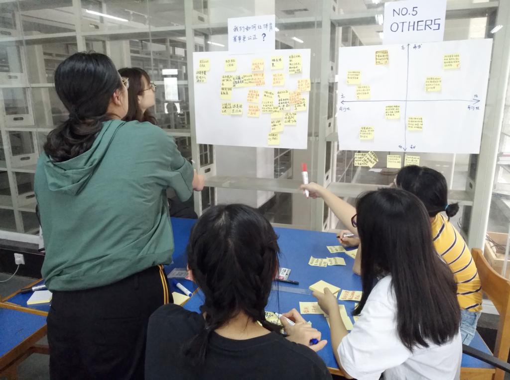 接下来,就到了这个工作坊的重头戏——走5D‘s的设计流程,设计出一套以RaceFit感应器技术为依托的系统。同学们在短短一周的时间内,从概念到方案,从挖掘痛点到发现需求,经过反复的头脑风暴,产生了许多优秀的方案,并在最后一天进行了汇报演讲。