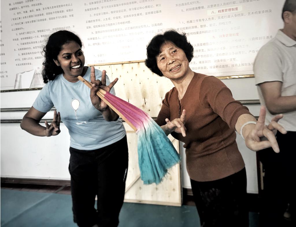 Geetha与非遗传承人朱老师探讨舞蹈艺术