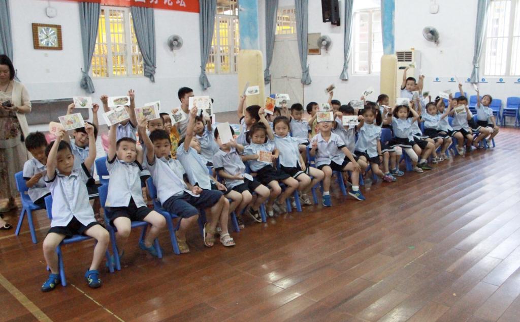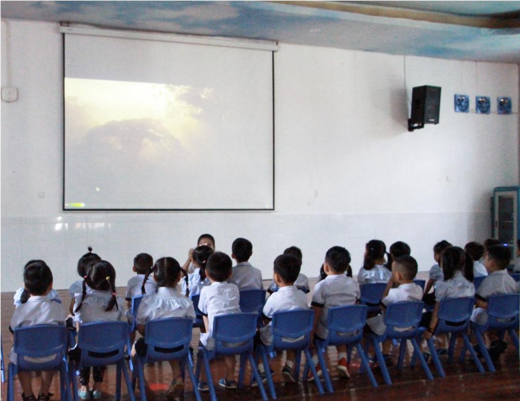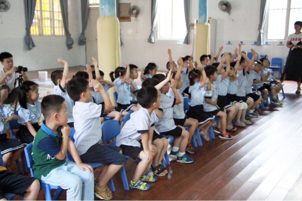 第二环节:学习四种分类垃圾:可回收、厨余、有害、其他;整个学习过程中小朋友们认真听讲,积极回答问题,都通过自己的努力获得去往熊猫岛的船票