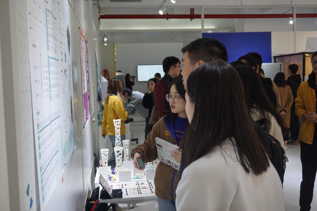 除此之外,还有负责校内图书馆、食堂等不同部门的教师职工,以及来自校外企业的人员参观了本次展览,他们同样被同学们对校园生活的设想激发了灵感,对大家的作品赞不绝口。