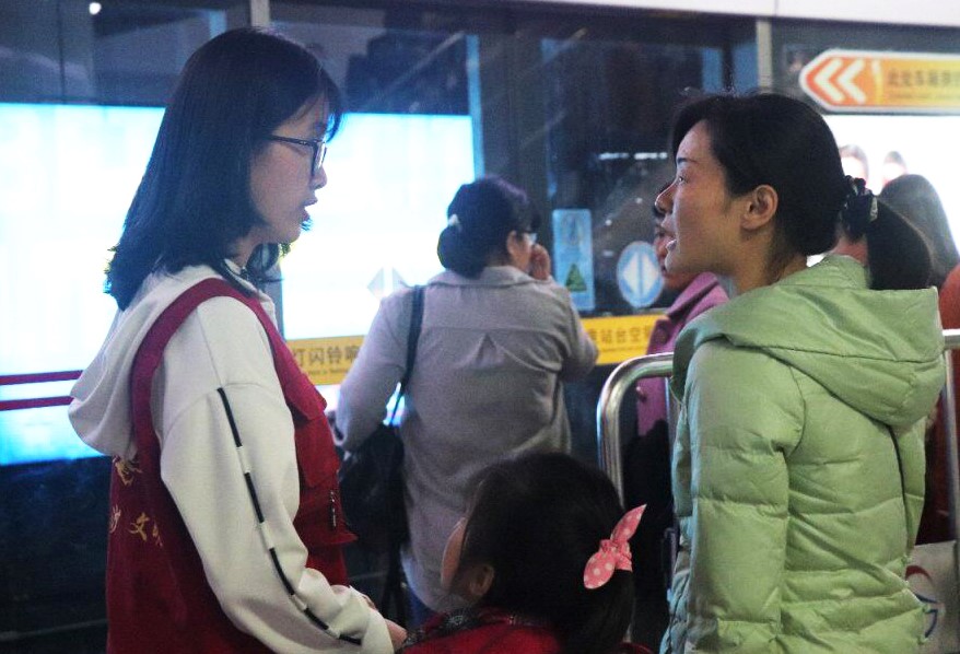 下午一点五十分,第二批志愿者也及时赶到,顺利完成与第一批志愿者的交接任务,上午的志愿工作顺利结束。在晚间地铁站人流量更大的压力下,第二批志愿者同学没有丝毫松懈,在晚上九点同样出色地为一整天的志愿活动画上了圆满的句号。