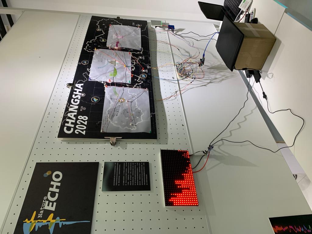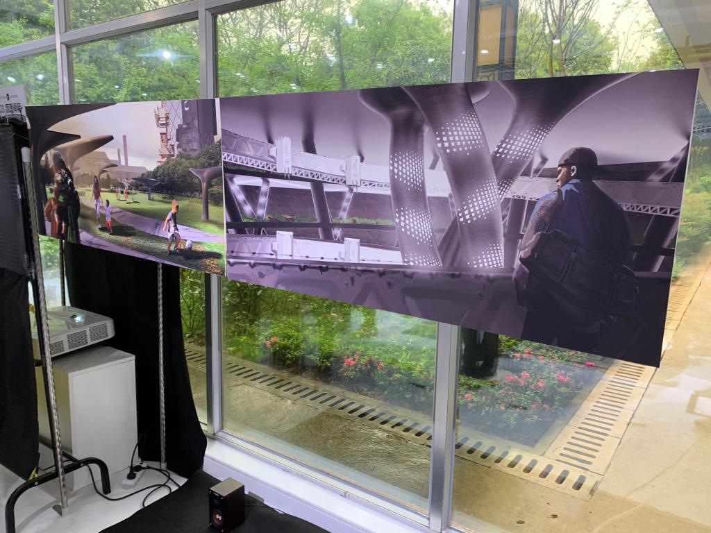 4月15日-4月20日,同学们设计作品展在设计公司桃子湖展厅进行,同学们用视频、展板、模型和互动装置等多种软硬件交互形式展示了设计概念和解决方案,并且集中进行课程汇报。联合国创意城市网络一带一路城市青年艺术家代表和远大P8的设计师也一同观展,和同学们深入交流设计方案。