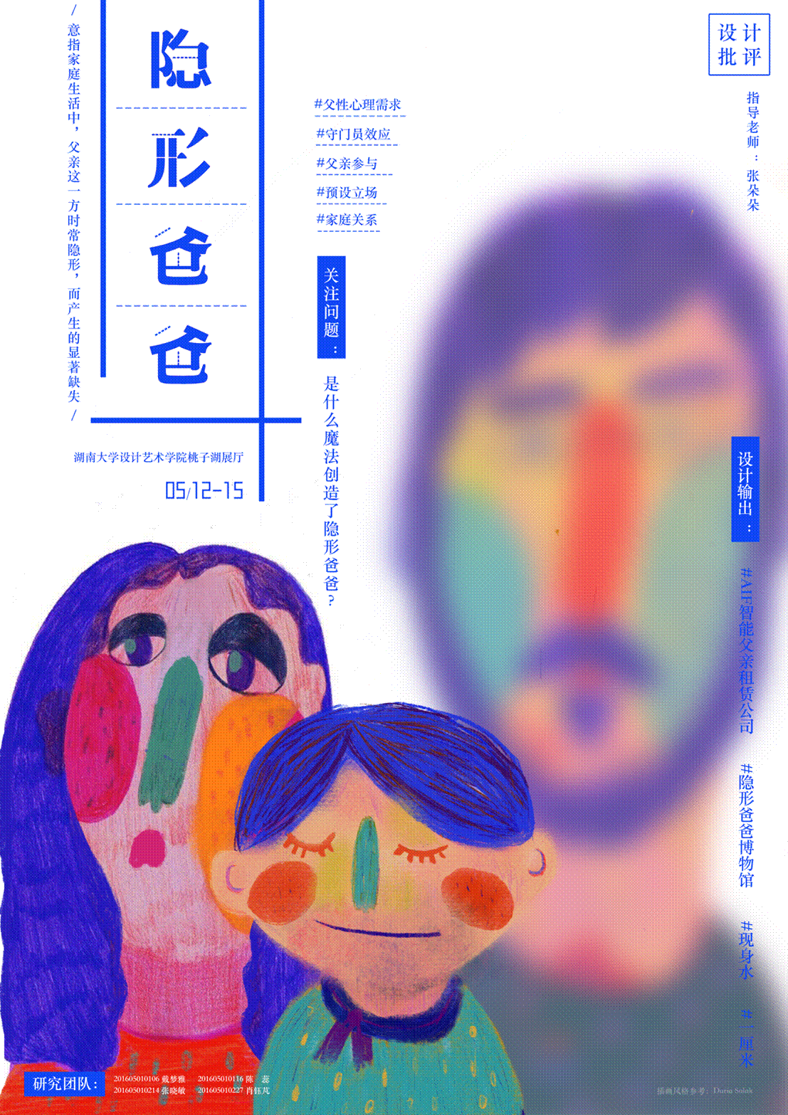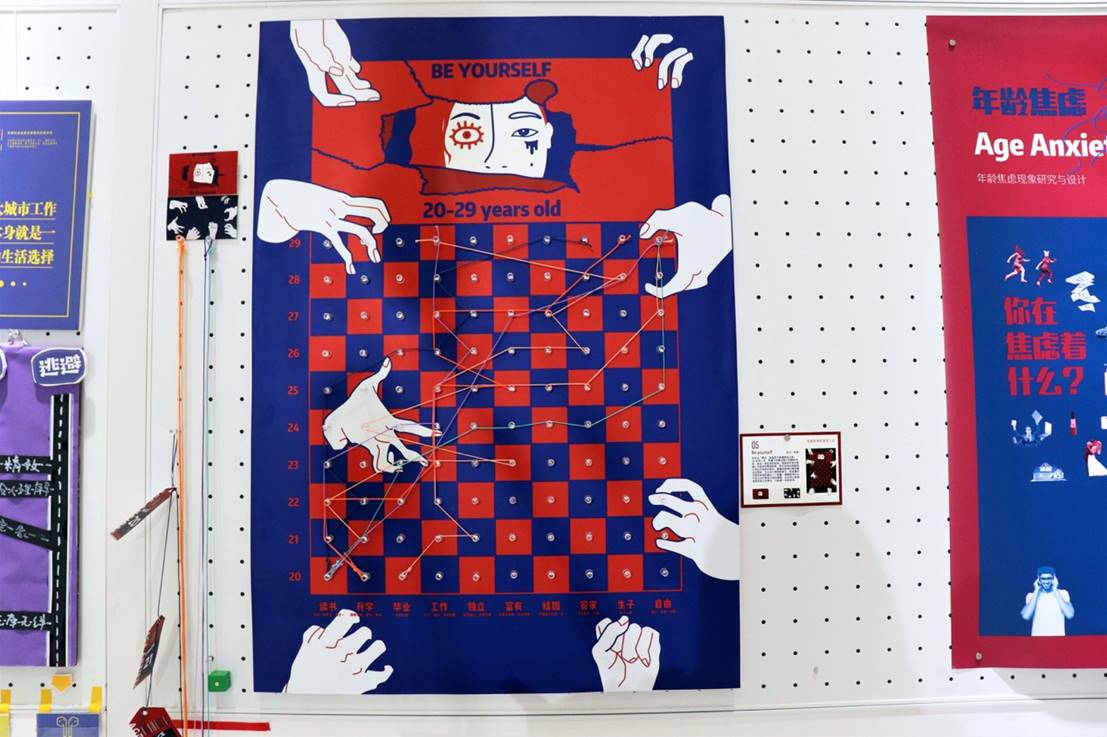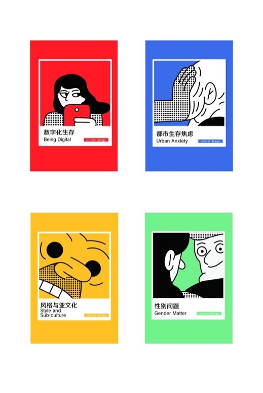 从3月底到5月,158位同学分成33组,就许多社会热点问题进行了深入研究和探讨。本次展览涵盖四大主题:1、数字化生存;2、风格与亚文化;3、都市生存焦虑;4、性别问题。其中包括996icu、夸夸群、隐形爸爸、年龄焦虑、Vlog、“腐”文化、微博女权等社会、技术、文化、生存状态等问题的反思,并以各式各样的形式进行了批判式设计与表达。