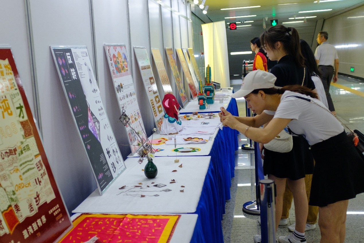 2019年7月1日,由长沙轨道交通邀请公司设计管理课程作业参与的“湘当设计 - 书香地铁”展览,在长沙地铁四号线湖大站2号口开展。本次展览作品均来自2018级研究生设计管理课程产出,内容主要分为两个模块:麓湘文创与创意导视。这些色彩艳丽、表现形式新颖、令人爱不释手的文创产品与创意导视是潇湘学子们对长沙的风景名胜、本地特有风土人情和湖大历史文物与古迹的理解和诠释,文创展品以生活中常见的服饰、文具、工艺品、玩具等产品为载体,创意导视以提取湖大特征与文化运用到导视设计中,这些都彰显着设计者独特的理解视角和极具创意的构思。通过这一个个创意独特、趣味盎然的文创产品与独具湖大文化的创意导视,将长沙悠久的历史、深厚的文化底蕴介绍给更多、更广大的海内外游客。