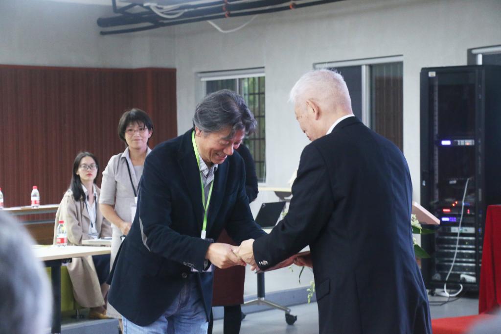 永田乔教授将珍贵文献资料赠送给赵江洪教授,这份资料当中包含了当年援助项目的教学计划,员工作品以及教师的纪念文章,赵江洪教授表示这是非常珍贵且具有纪念意义的研究资料,并对永田乔教授表达了真挚的感谢。