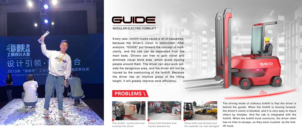 “领路者SEP”是一款基于5G技术背景下的电动型叉车,通过改变了驾驶室与叉车本体的人机关系,解决了传统叉车的视觉盲区的问题,并且具有能够适应不同场景,提高工作效率,避免生命财产损失等优点。