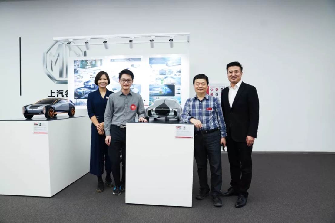 图四·图中依次为指导教师赵丹华教授、优胜奖获得者甘光劲、何人可经理、上汽技术中心副总设计师兼全球设计总监邵景峰