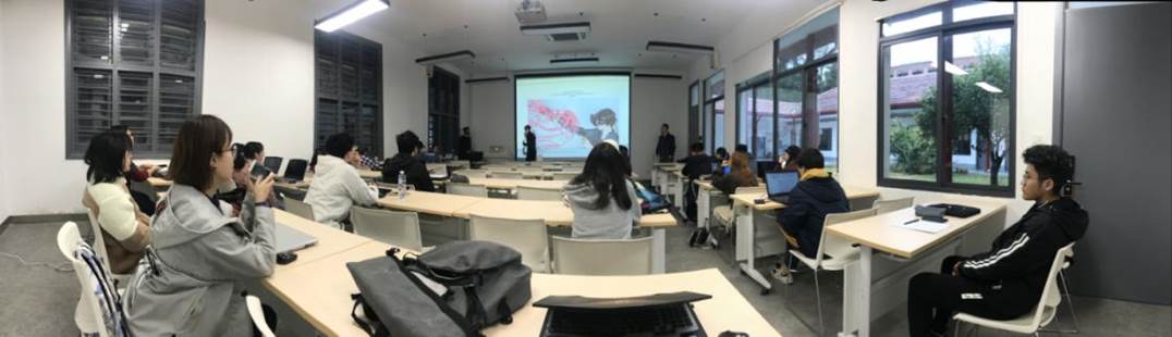 经过为期两周的制作与调整,在11月29日早上,每个小组将自己精心准备的VR展示视频与交互体验模型进行了展示。