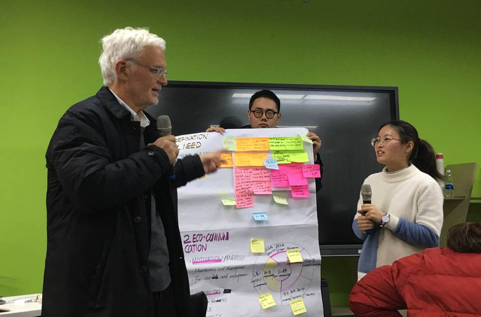 会议期间,还同期举办了社会创新与可持续设计中国案例展,展示了国内设计院校在社会创新和可持续设计领域的探索和成果。公司“基于物联网及无人物流的社区垃圾分类回收系统”“校园公寓电子类闲置物品体验空间小站产品服务系统”“GREENMADE固态清洁剂在设计及产品服务体系”等5个设计案例也参与其中。在12月4日至5日举行的生态导向的社区主题工作坊中,包括公司两名研究生在内的参与者,在Ezio Manzini教授的引导下,通过创意设计为自然体发声,以生态观建立人类与自然新的相处方式,探索更符合生态观的人-自然共处模式。
