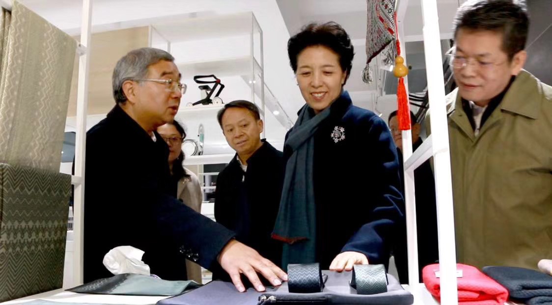 在公司党委书记赵亚辉的介绍下,乌兰首先考察了公司自2009年以来展开的包括“花瑶花”扶贫项目在内的“新通道”系列设计与社会创新项目及其成果,并高度肯定了公司师生通过对侗锦、花瑶挑花等非遗产品的创新创意转化,结合现代加工方式在解决地方文化传承以及就业问题,实现乡村振兴等方面的工作;紧接着,乌兰参观了公司员工为庆祝国庆70周年而进行的相关创作;随后,她又饶有兴致地参观了公司在交通工具设计、老年人产品设计以及智能交互设备设计等方面的成果,并对公司密切结合产业进行创新创造给予了赞赏与鼓励。最后,乌兰强调,要搭建好高校师生创新创业平台,完善激励机制,促进高校科研成果转化,推动高校与相关部门之间的联动,优化资源配置,加快产、学、研、用一体化发展,为岳麓山大学科技城发展作出更大贡献。