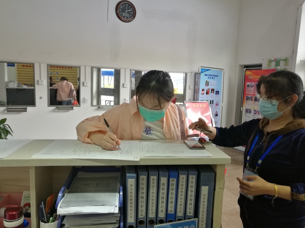 5月15日上午,球王会迎来了2020年第一位返校生,2017级研究生成婉莹。