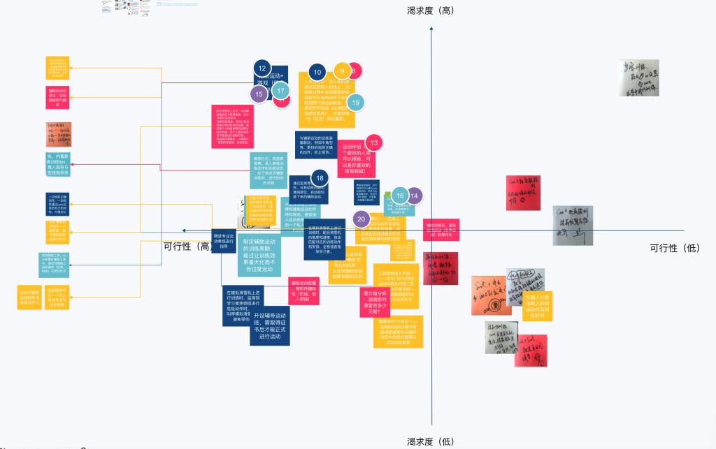通过线上课堂,Dennis向同学们介绍了亲和图、头脑风暴、渴求度-市场矩阵等设计工具,并带领同学们实践运用这些工具进行思考和设计。