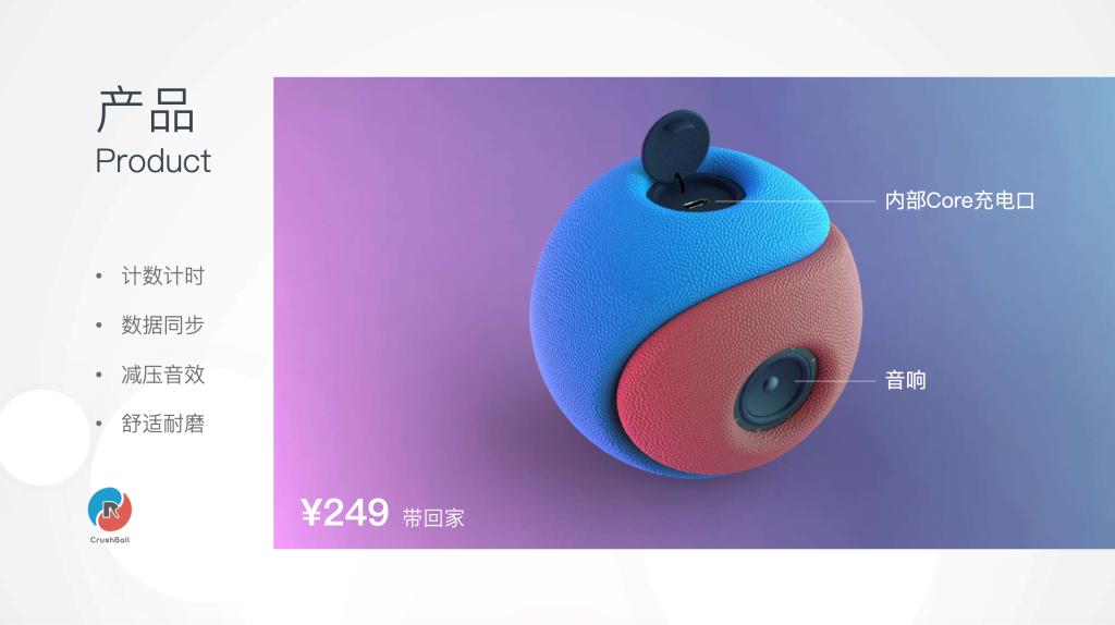 CrushBall是一款通过增加训练球的交互性来解决3~9岁儿童在家中 感统训练过程枯燥、乏味以及家⻓监管训练不便问题的产品。