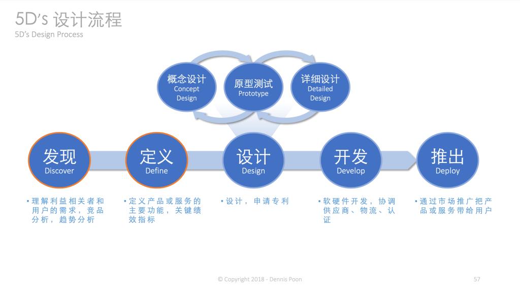 在工作坊的第一天,Dennis向同学们介绍了自己总结的设计的五个步骤,即5D流程:discover, define, design, develop和deploy,通过这个流程设计的产品将会更加完整与有意义。接下来Dennis介绍了本次工作坊的主题:围绕着RaceFit公司的新型动作识别技术展开,探索这种技术在不同场景下的应用可能。