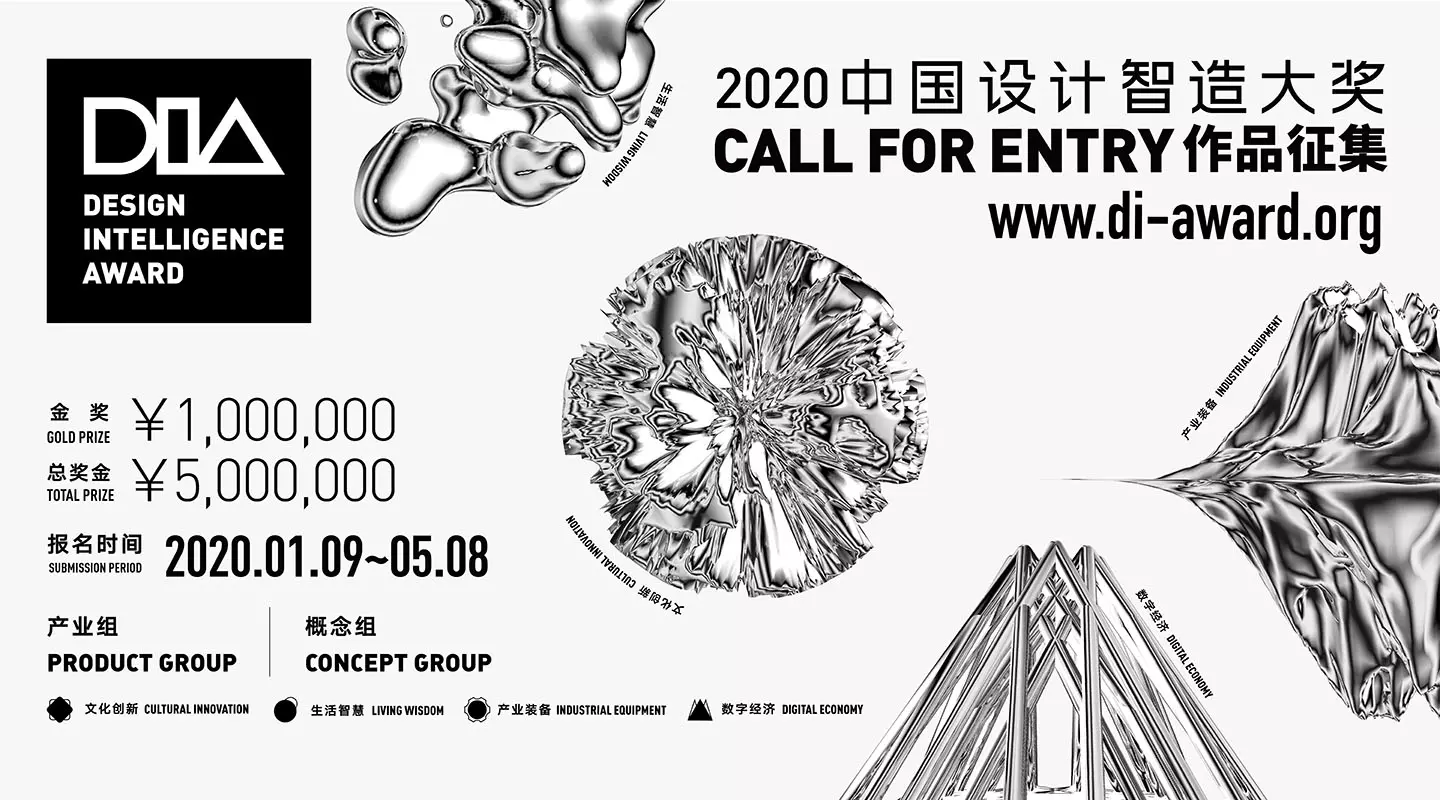 2020年1月9日,第五届中国设计智造大奖(Design Intelligence Award)正式启动,设置“产业组”与“概念组”两大组别,总奖金池达500万。“产业组”面向上市2年以内,或能提供完整功能样机的作品,分为金银铜三类奖项;“概念组”面向未上市但能提供设计模型的作品,分为“明日之星奖”和“设计新锐奖”两类奖项。同时还评选出约300件授予“佳作奖”,增设“最佳组织奖”若干名,用于表彰在作品征集及奖项推广方面作出突出贡献的机构。
