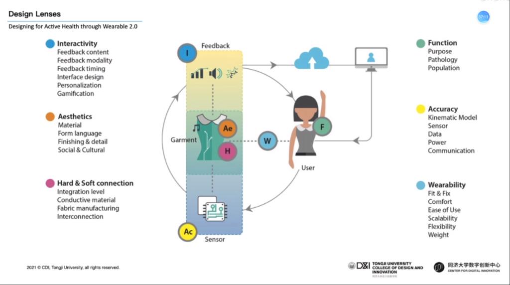 王⽼师最后提出,应在新工科新设计的范式下调整健康穿戴⼈因研究的新使命,即:丰富和完善⾯向⾃然交互的⼈因数据库,提升数据在产品全链路设计过程中的参与度、耦合度和易⽤性,形成新的⼈因设计规范和体验标准