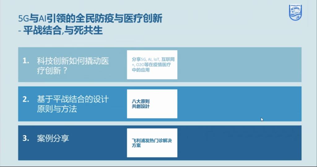 来自飞利浦体验设计中心的资深服务设计师Claire Ching,分享了在全民防疫时代下,设计师在健康领域的思考与参与。用真实的设计案例探讨了5G技术、AI人工智能等创新科技如何为人类的健康服务,以及如何更好地守护医护人员和病患。