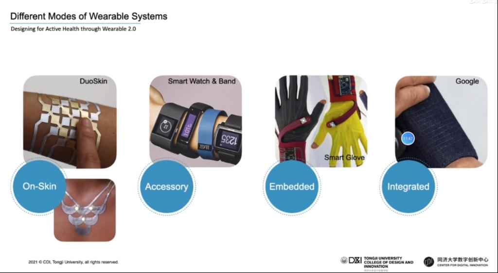 可穿戴设备的四种应用模式:皮肤界面应用、配件式设应用、嵌入式应用,以及整合式应用,王老师并解释了作为可穿戴设备2.0的主要应用,整合式应用将具备传感、集成、执行功能的纺织线嵌入织物当中,使其直接具备电子电路的特性,是一种能大大提升用户舒适性的应用,也成为2.0时代的主要发展方向。
