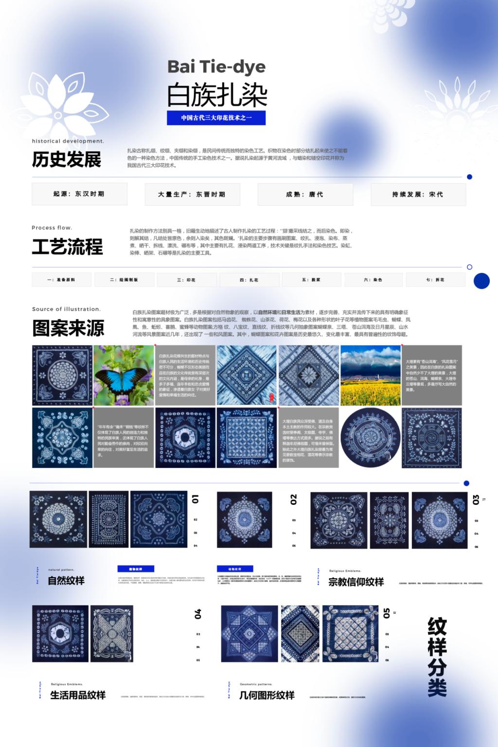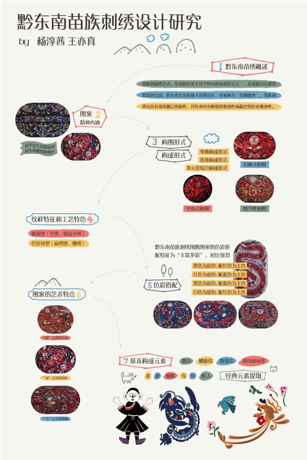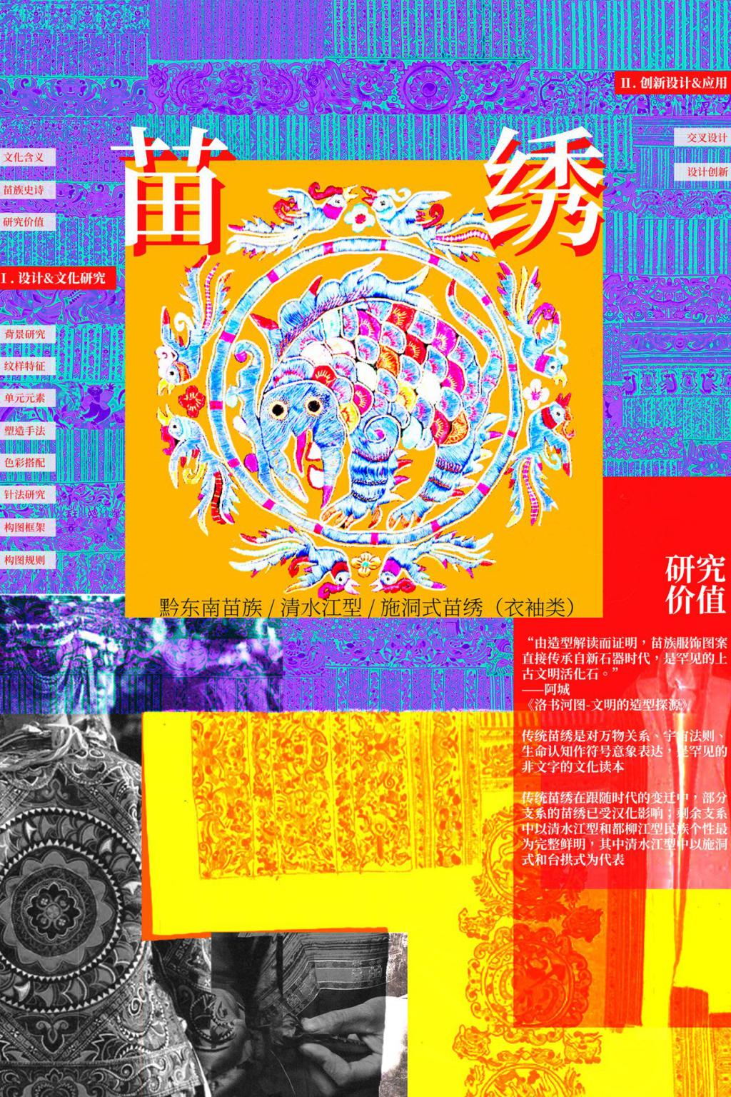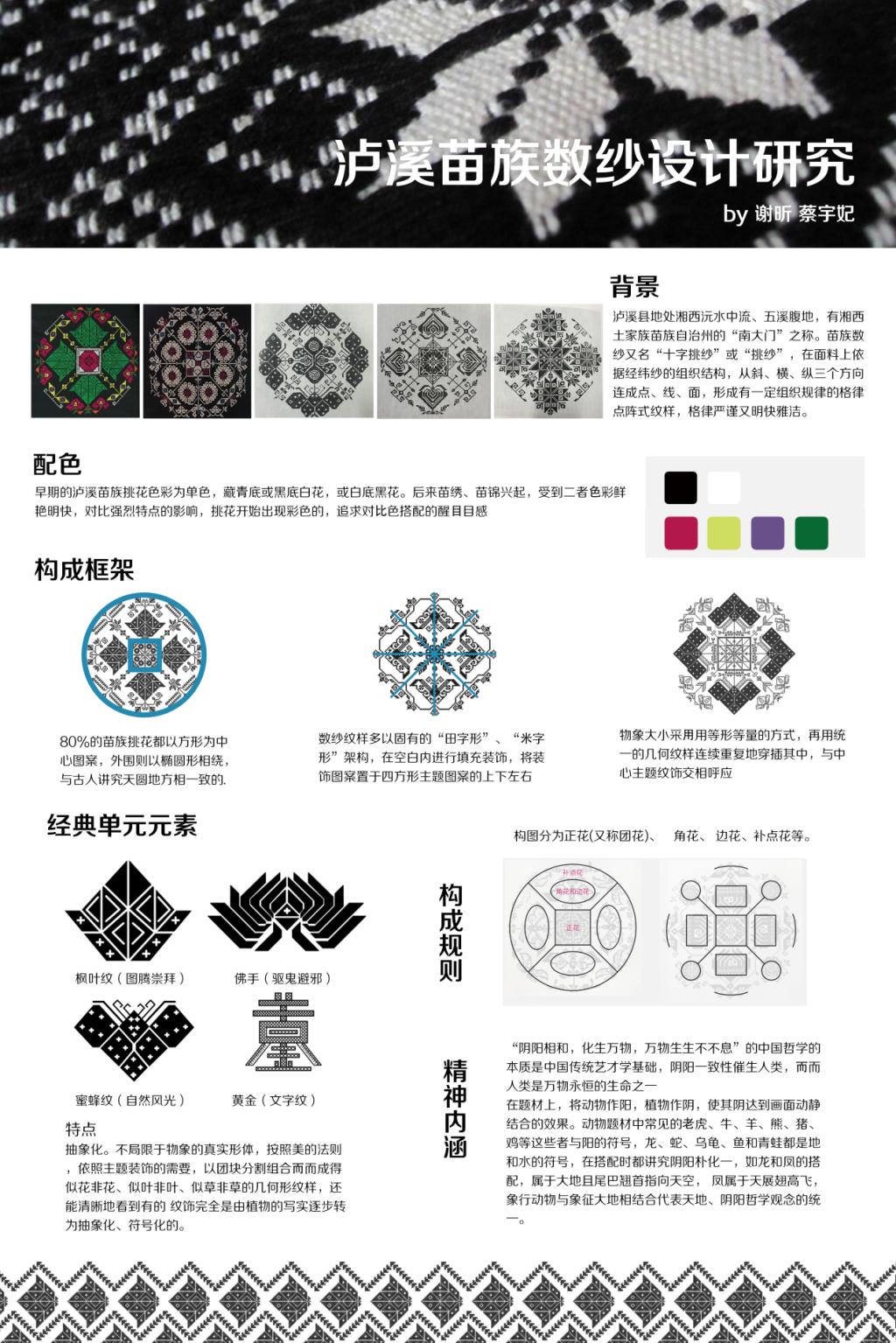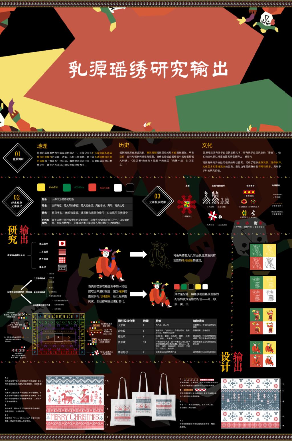 介绍:本次我们小组研究的主题是黔东南苗绣,主要以清水江型施洞式苗绣中的衣袖类作为研究重点,进行了设计与文化研究及其设计创新与应用;在设计研究方面主要从纹样特征、经典单元元素、经典元素提取、形象塑造手法、经典色彩搭配、针法与视觉呈现、构图框架、经典构成规则这些方面进行了深入研究;文化方面主要研究了苗绣在当下的研究价值与意义;最终根据前期研究进行系列产品创新设计。