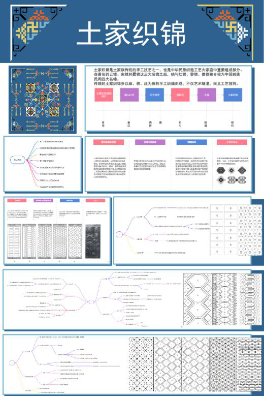 介绍:本次课程我们研究了土家织锦的文化背景和图案构成,重点分析构成规律 运用土家织锦的色彩以及构成法则重新组合设计具有土家织锦特色的创新图案,结合花瑶挑花的构成法则和核心设计元素进行创新设计。