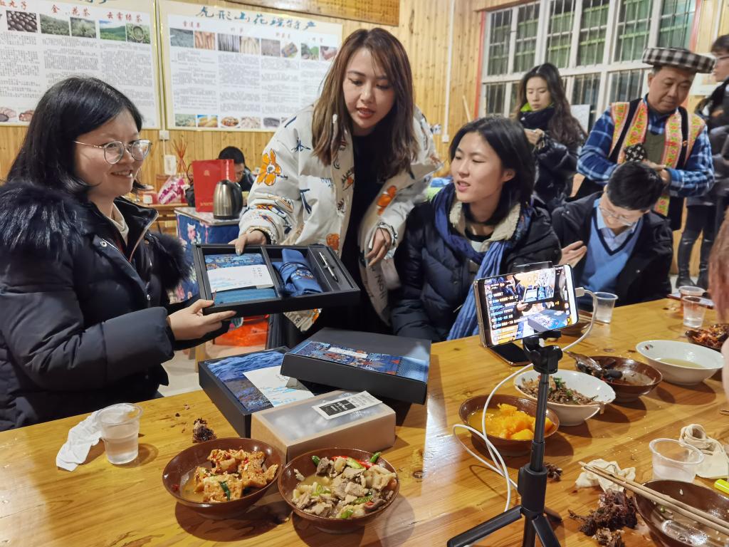 20日11时整,花瑶白水洞村首场“公益助农直播活动”终于揭幕!凭借着多年累积的超高人气,“会长”刚一开播,直播间便涌入了200万粉丝,弹幕更是让人应接不暇,网友们“支持正能量”、“买买买”、“有文化的产品”等等鼓励的话语让在场村民和湖大师生们都心里暖暖的。