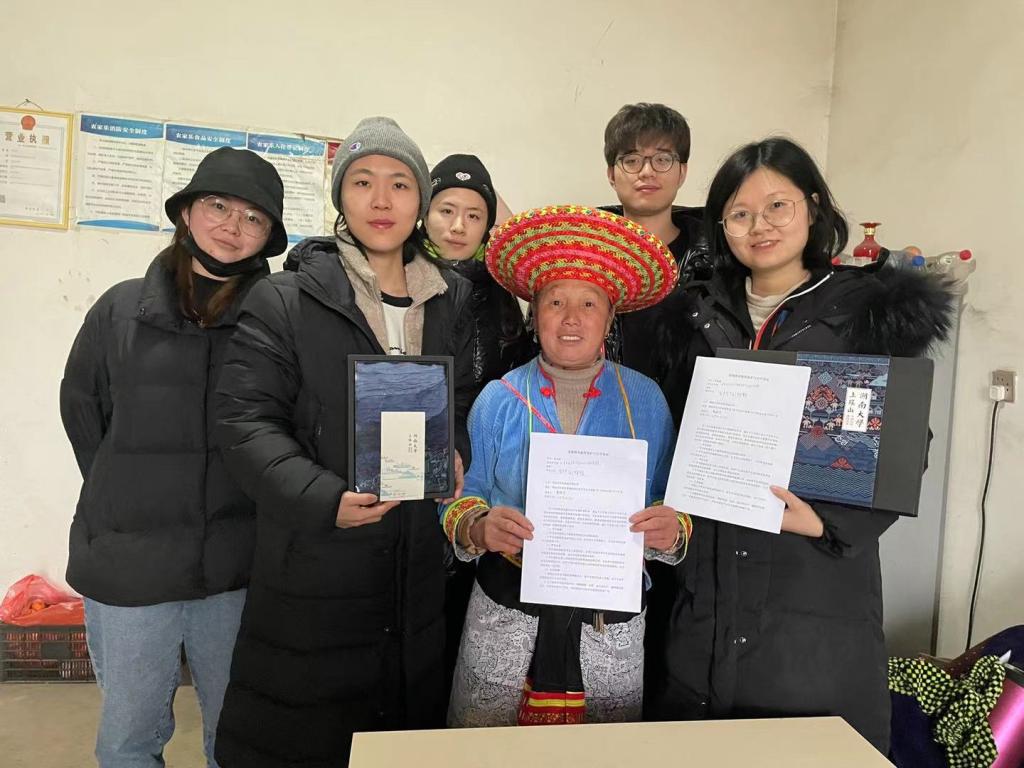 (设计公司师生和挑花传承人奉堂妹签署版权协议)