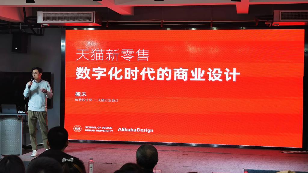 上午讲座共有四场,分别为菜鸟设计-M实验室的黑雾带来的《数智化物流的智造设计》、蚂蚁金服数字金融体验设计师灰夜的《为用户做金融设计》、阿里巴巴天猫行业设计撇未的《天猫新零售——数字化时代的商业设计》和蚂蚁金服数字金融体验设计师木珩的《从设计新人到设计“新人”》。