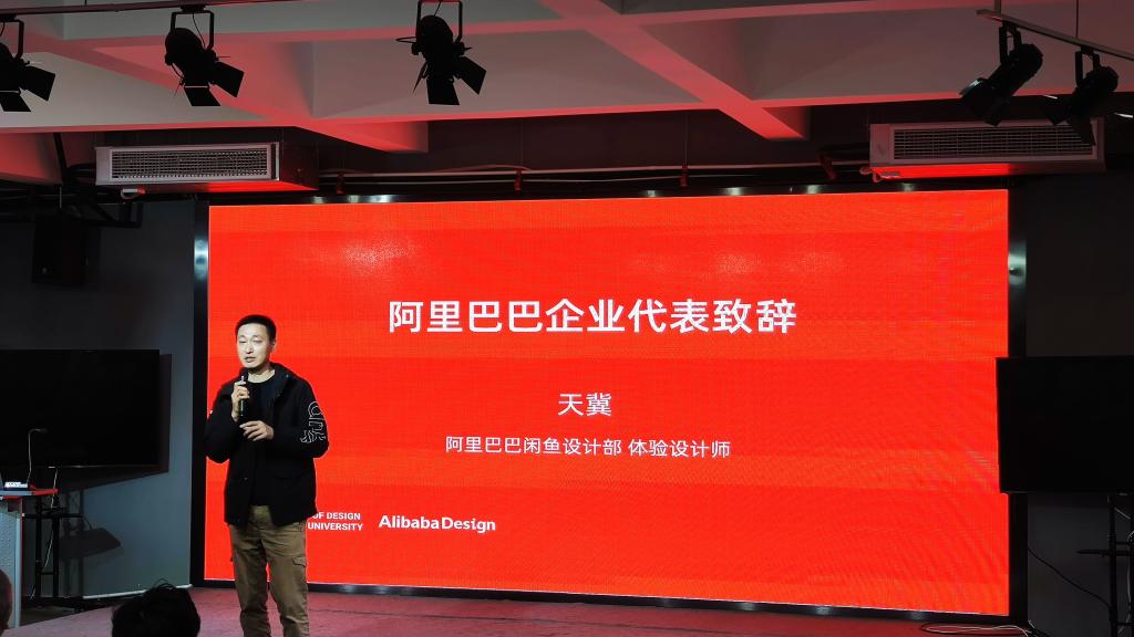 随后,闲鱼设计体验设计师天骥代表阿里巴巴致辞。天骥指出,球王会与阿里巴巴设计团队合作密切,阿里设计部有相当比例的设计师来自湖大。阿里设计极其重视与湖大的战略合作关系,并期待双方能在将来达成更加紧密的合作。