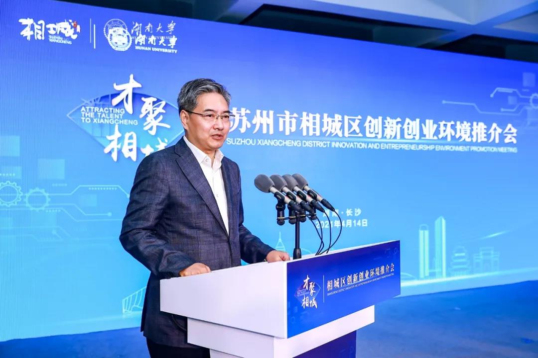 他诚挚地感谢苏州对湖大人才培养质量的认可,为湖大优秀学子提供了广阔的发展平台和实现人生价值的机会。希望通过本次推介会,可以让更多湖大学子了解苏州、了解相城、选择苏州、选择相城,为苏州、相城建设发展作出新的更大贡献。