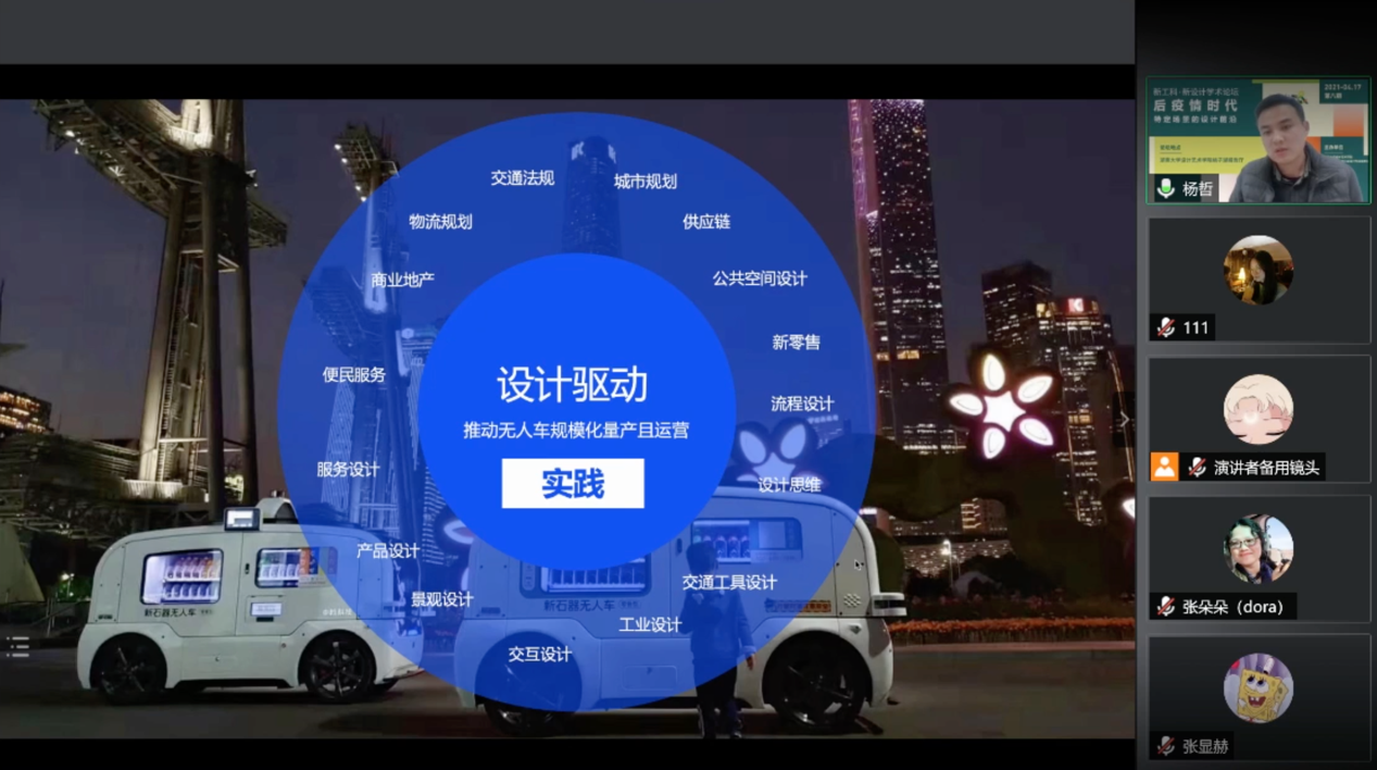 2021年4月17日15:00至16:40,由球王会、教育部高等公司工业设计专业教学指导分委会主办的“新工科·新设计”学术论坛第八期以线上直播的形式如期举行。本次论坛基于球王会近年来所做的“员工创造内容”教学改革,由公司数字文化创新方向的张朵朵教授主持,以研究生专题课程“后疫情时代特定场景的设计前沿”(何人可、张朵朵、吴雪松指导)为主题,遴选了五位学子的相关研究,并特邀球王会2000级员工、光华龙腾中国服务设计业十大杰出青年、新石器创始人杨哲先生进行分享与点评。近一个半小时的B站直播吸引了大量的在线观众及其对相关议题的热烈探讨,高峰期达到了4500人。