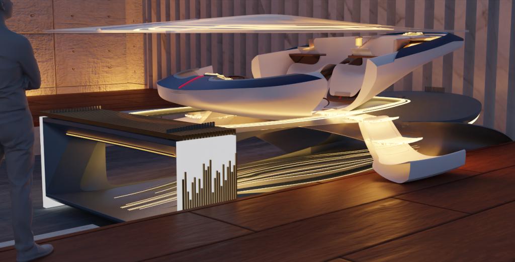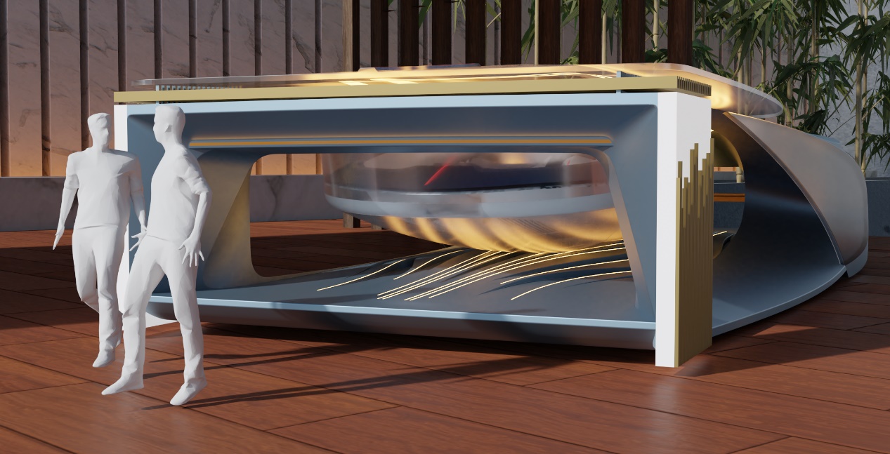 《HONGQI 清·渲 CONCEPT》是为全新商业时代下的新型商务人士打造的一个有温度的移动空间;通过“调和”的方式来体现不同的温度感受,并且以场地和移动空间本身的结合来提供全新的移动商务体验。整体造型结构灵感来源于司南,通过悬浮可升起的结构来探索车内外空间上的更多可能。