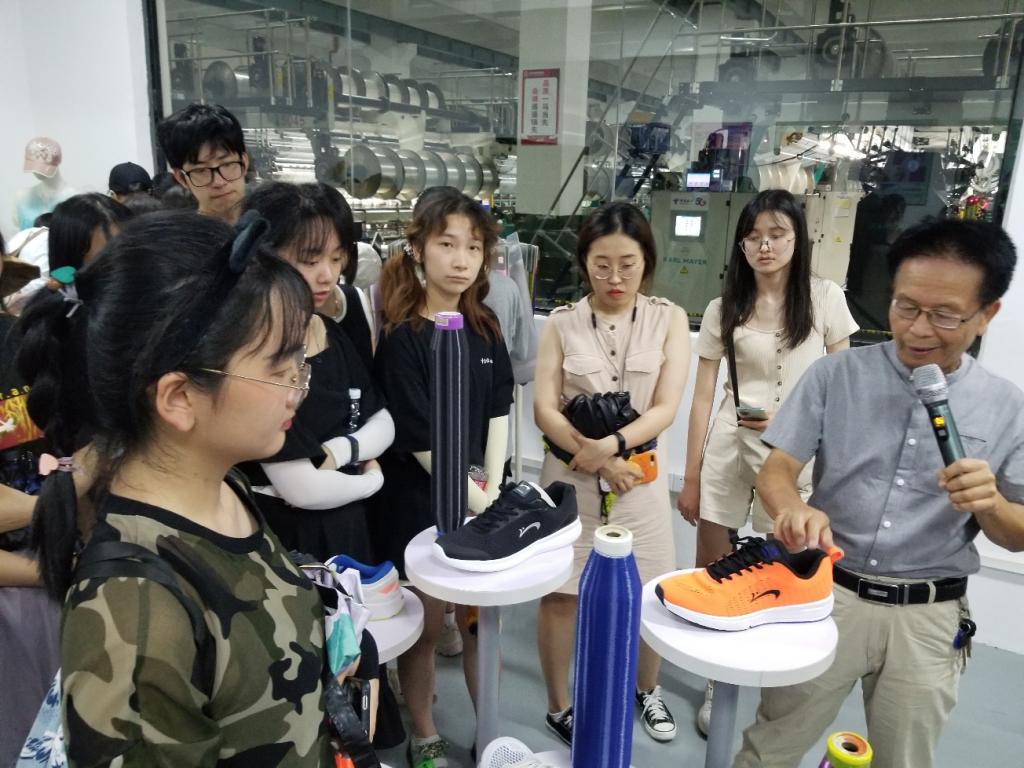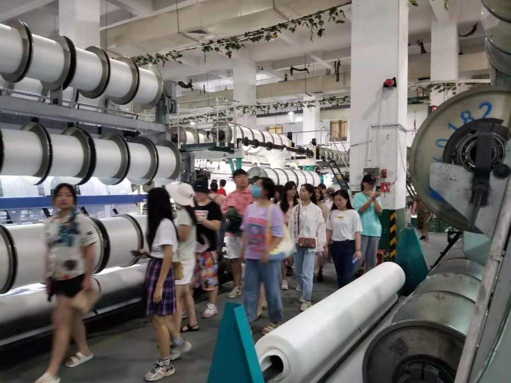 信泰集团的车间已经实现大规模全自动生产,精密的经、纬编生产设备如从德国引进的 KS 系列经编机和 RD6 双针床经编机、经纬纺机、E2291 双针床经编机令师生们大开眼界。其中最吸引师生们注意力的是各种纺织材料的研究与应用成果,网眼面料甚至可以被应用到正式场合的西装外衬以及女性礼服上,这给予学习工业设计的员工们创作的灵感和启发。