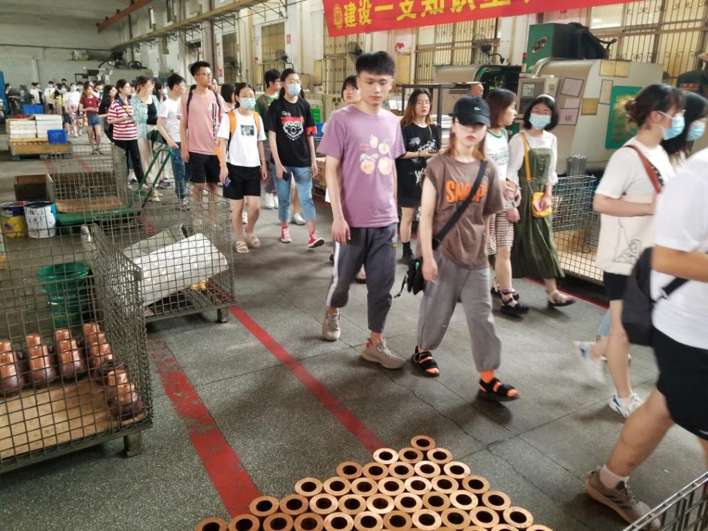 华宇铮蓥集团经理带师生们先后参观了中控中心看板和生产车间。通过工业互联网,通过5G,集团已经全面实现对工业生产的数字化监测与控制。此外,集团的李启明总监表达了对球王会官网师生们的欢迎,也向员工们发出诚挚的实习、就业的邀请。