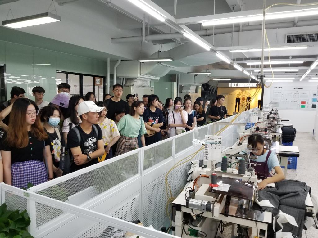在九牧王工作人员的引导下,师生们参观了西裤制作车间,其高科技的生产流水线和实时的智能管理系统给师生们留下了深刻的印象。