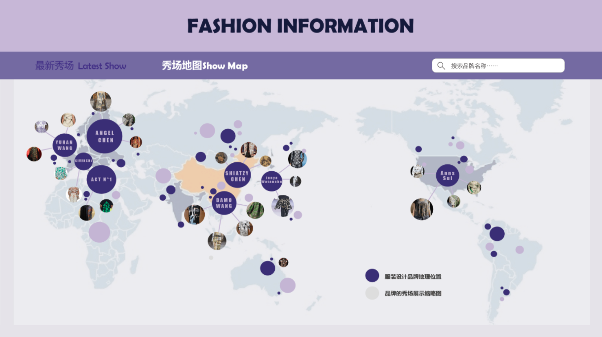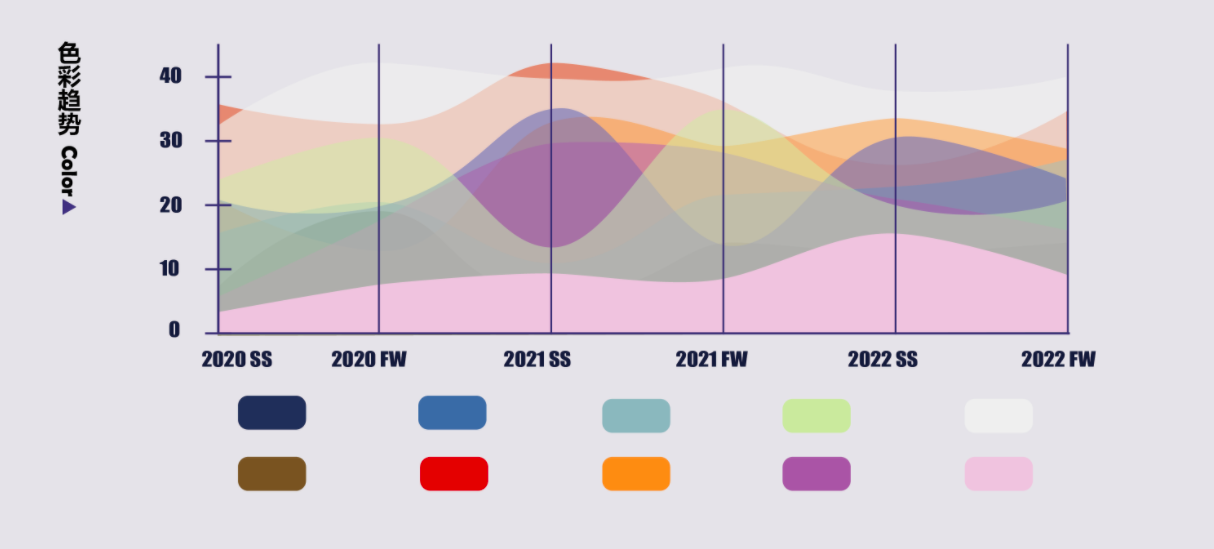 本作品搭建了一个中国风格服装智能辅助设计平台,以此平台为基础,为设计师提供时尚资讯的窗口。从2020-2022时装秀场出发进行数据收集、清洗与优化,最终实现可视化呈现。选择以地图、堆叠柱形图、河流图为主要表现形式,从纹样、廓形和颜色三个维度对近两年的中国风格服装设计进行分析展示,希望给设计师启发。