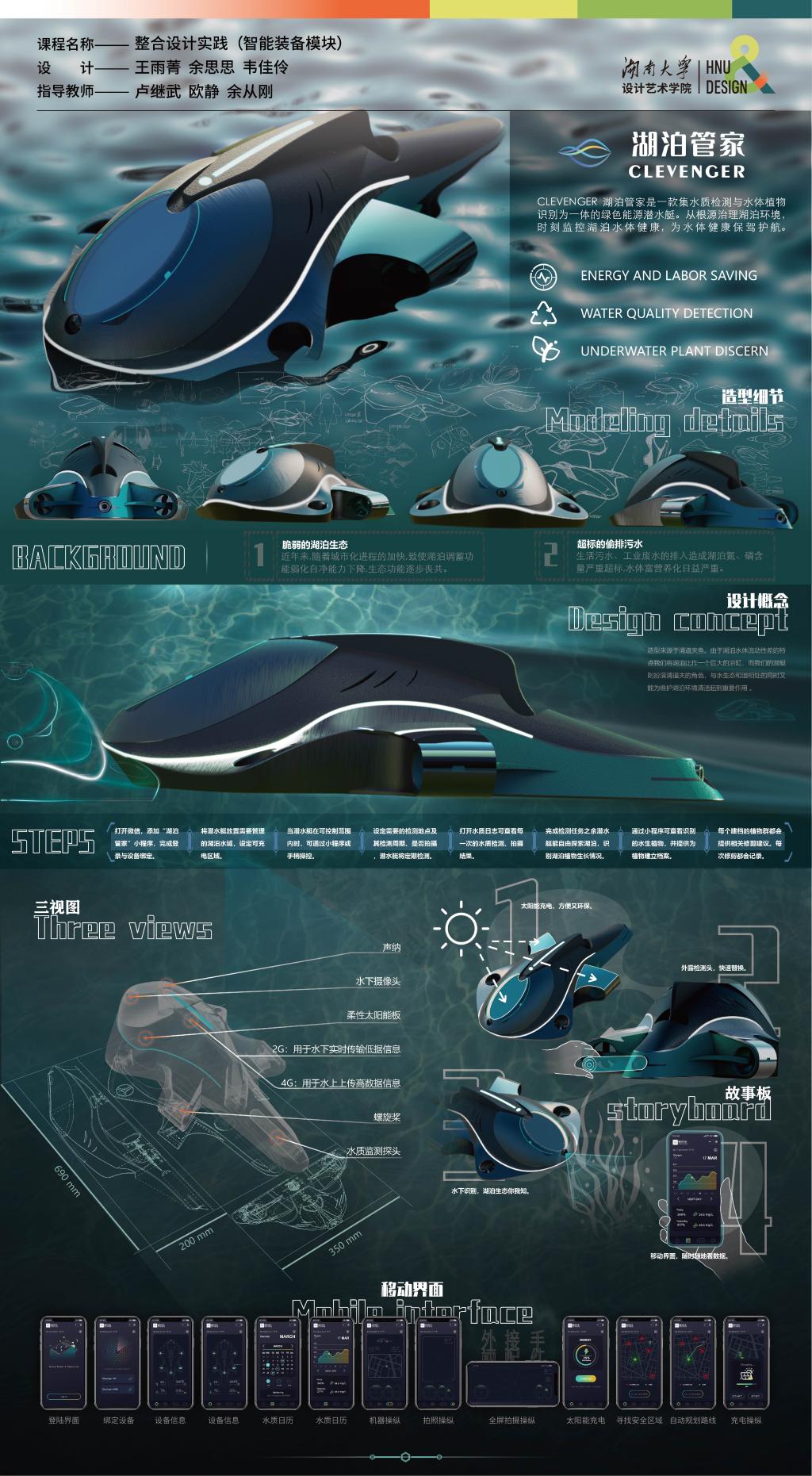 本设计通过日常湖泊监测,从源头治理湖泊污染。这是一款以太阳能、水质检测、水下识别为设计卖点的智能潜水艇。该潜水艇可以被长期放置在湖泊中,通过太阳能充能;通过对水域的日常水质监测,用户可以实时了解水质信息;通过水下识别,了解水生植物生长情况,从而能在植物长势对水体健康产生危害前及时进行植物收割。