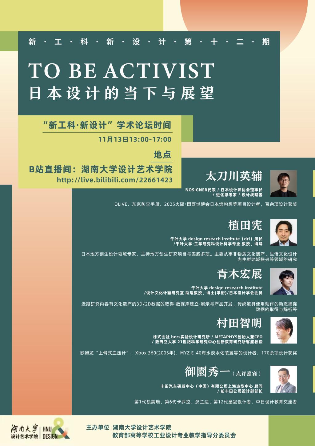 “新工科·新设计”学术论坛第12期:To Be Activist 日本设计的当下与展望
