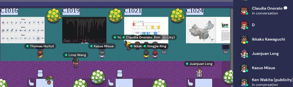 受到全球疫情形势的影响,今年的叙事可视化竞赛在Gather Town进行线上展览和Q&A环节。举办方通过Gather Town在线平台打造了虚拟的大会会场,为与会者提供一个更加沉浸式、友好和休闲的研讨空间,是疫情和后疫情时代线上布展的全新尝试。