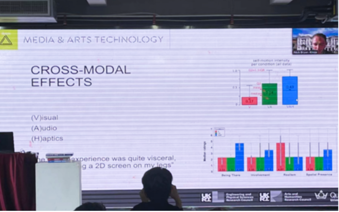 随后,Nick Bryan-Kinns教授带来《声音交互与多通道可触界面》的主题分享,就声音交互与多通道可触界面(Sonic Interaction and Multimodal User Interface)问题展开了学术讨论,展示了媒体和艺术技术交流方面的部分技术开发成果,并根据WHO的可及包容性设计目标,从声音交互设计,可触界面设计,包容性设计,特殊教育需求的可触界面设计,跨模态设计多方面展开了介绍,最后表明了对未来多通道交互的映射研究的期待。